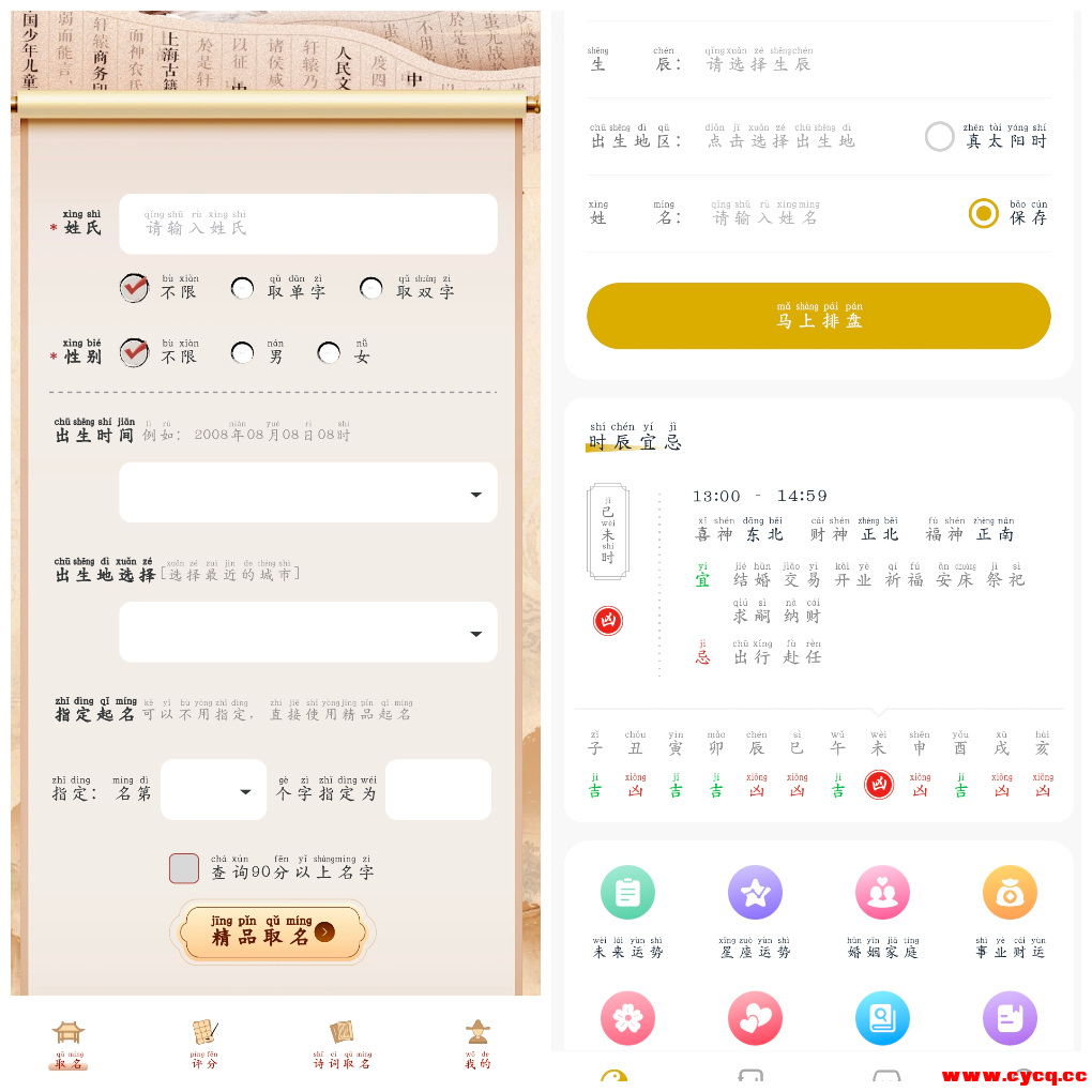 一款手机起名App,专业测名,吉祥如意!提供姓名测试、八字分析、起名建议等功能,帮助你为起一个好名字,传承中华文化。界面简洁,作便捷,是你的起名助手好帮手!(解锁VIP功能)