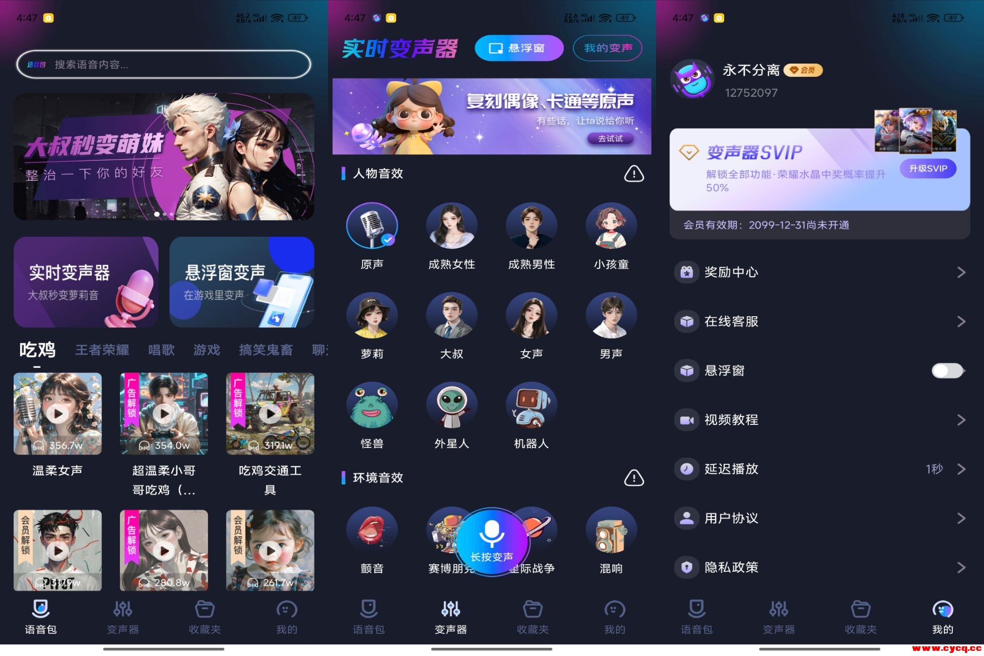 【软件名称】:手游语音变声器 【软件版本】:1.1.3 【软件大小】:53.28M 【测试系统】:小米 【使用说明】:一款手机语音变声App,趣味变声,欢乐互动!提供多种变声效果,让你在游戏中改变声音,增加乐趣,与好友互动。操作简单,效果多样,是你的娱乐好帮手!解锁VIP功能 【下载地址】:**** 本内容被作者隐藏 ****