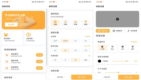 软件介绍:一款手准星画质App,游戏化,精准射击!提供游戏准星设置、画质化、游戏辅助等功能,让你提升游戏体验,增强射击精准度。界面简洁,作便捷,是你的游戏玩家好帮手!(解锁去广告)