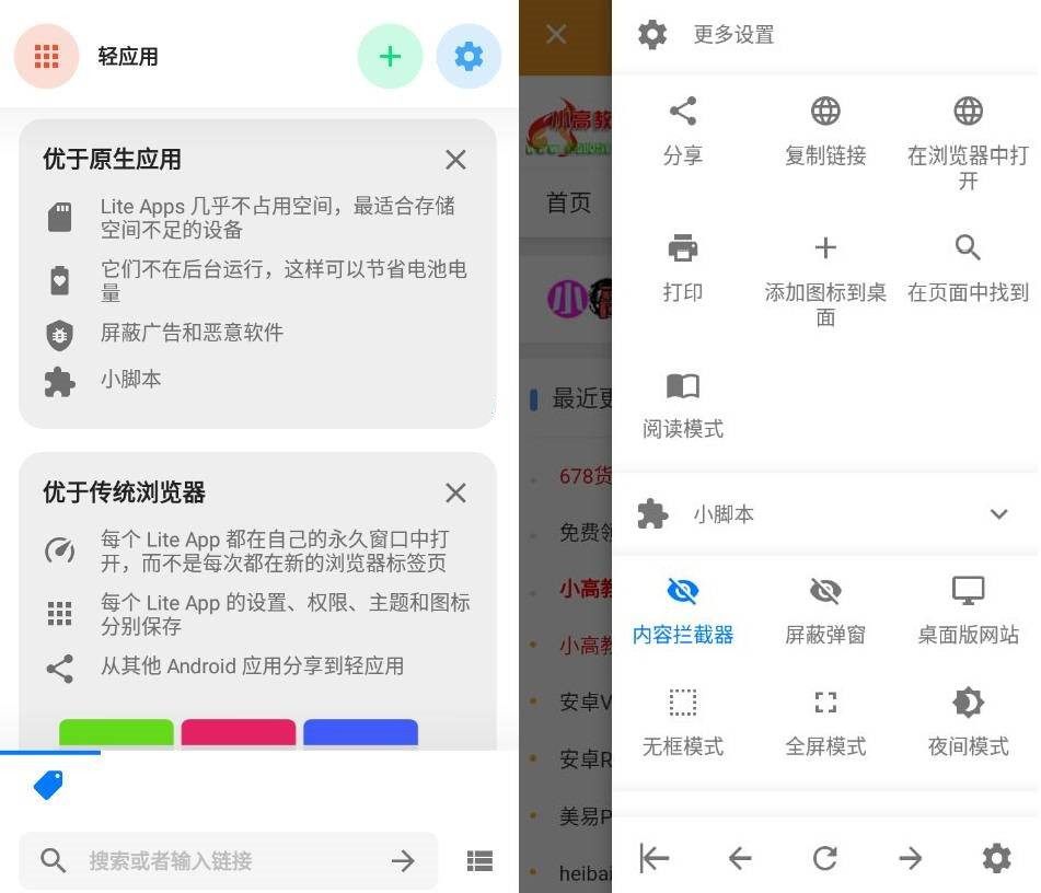 在夜间模式下浏览,阅读器视图以及使用每个Lite应用程序的